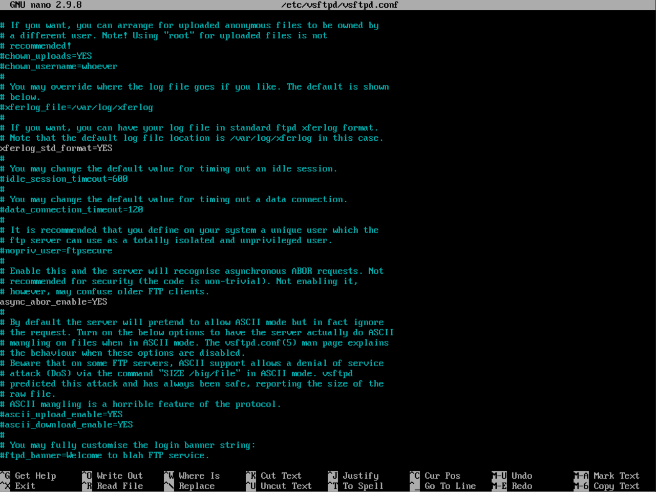 nano /etc/vsftpd/vsftpd.conf